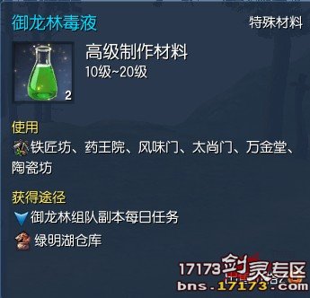 上面有标明获得途径:1是御龙林组队副本每日任务,2是绿明湖仓库副本。
