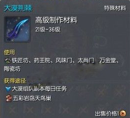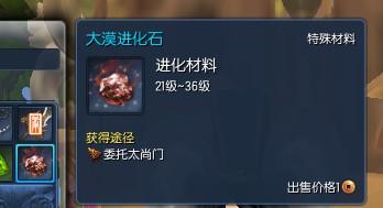 那么大漠进化石怎么获得呢,我们可以通过查看物品信息得知这个材料是要委托太上门的。意思就是说这个东西是委托太尚门制作出来的。当然由于是可以交易的东西,所以也可以拍卖行或向其他玩家购买。