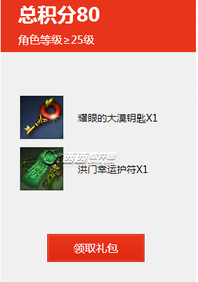 人物角色等级35级,可以获得一个礼包,开启获得耀眼的大漠钥匙。