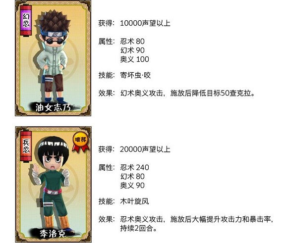 奈良鹿丸:不管非R还是超R,前期必入手的角色啊,陪伴大家走过多少风风雨雨啊!幻术攻击威力不错哦!评价:B-