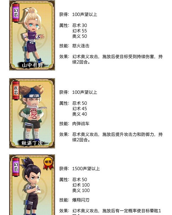 山中井野:作为小樱的好基友,却差了小樱不知道几个档次去了……貌似没人会用,很平庸的伙伴!评价:C