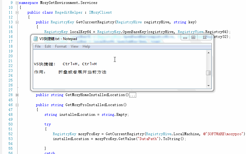 折叠或者展开当前方法(Ctrl+M,Ctrl+M)