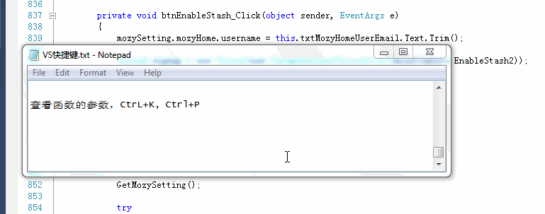 查看函数参数 (Ctrl+K, Ctrl+P)