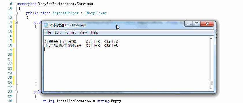 注释(Ctrl+K, Ctrl+C)