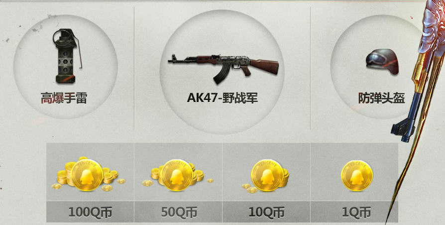 4、Q币奖品有100Q币、50Q币、10Q币、1Q币;CF道具有AK47-野战军(7天)、防弹头盔(7天)、高爆手雷(3天);活动期间登录易迅客户端≥2次还可以额外抽极品道具:AK47-火麒麟(7天)或黄金沙鹰(7天);