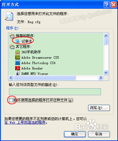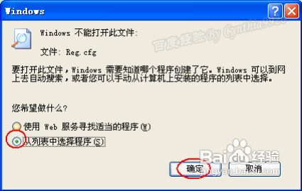 但多数情况下.cfg文件可以通过记事本打开。直接.cfg文件,弹出“Windows”对话框,选择“从列表中选择程度”,再单击“确定”按钮: