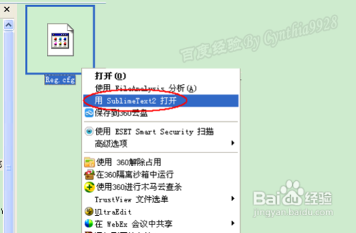 这时我们还可以尝试用第三方功能强大点的文本编辑工具来查看,如“SublimeText”软件。安装第三方软件后,右击该.cfg文件,选择“用SublimeText打开”命令: