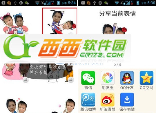 4)选择其中的动态表情可以单独分享或保存表情,点击后可以分享到微信或QQ微博等。(如下图所示)