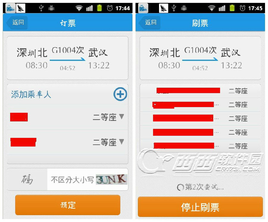 接下来就是开始刷票了!和人生日历PC端一样,手机日历也是在刷票之前先添加好乘车人信息,这样就不会在刷票之后再花费时间去填写订单信息,最大程度的节省您的抢票时间。验证码也能系统输入,手机日历会不断的更新版本,待春运时,验证码即可自动输入。添加完乘车人信息之后,点击预订开始刷票,系统刷到票之后,直接预订好,您只需要登录支付界面进行支付就可以。