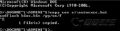 在DOS提示符下copy con a:\autoexec.bat,由于我们要将批处理文件在A盘上使用,因此批处理文件名前加入了路径;其它操作及内容,与在DOS环境下的操作都是一样的。