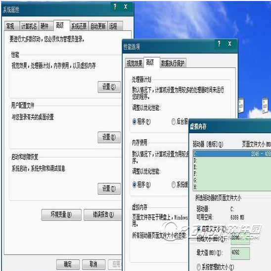 右击“我的电脑/属性”,然后在对话框的“高级”标签下单击“性能”下的“设置”按钮,在”性能选项”对话框中切换到“高级”标签下,再单击“虚拟内存”下的“更改”按钮,即可根据需要更改页面文件的大小——先选中C盘,然后选“无分页文件”,再点“设置”按钮;之后选中要生成该文件的盘符,在下面点选“自定义大小”并输入合适的数值,此数值通常为物理内存的1.5倍,再单击“设置”,最后确定,重新启动电脑,该文件就在其他分区上了。不推荐禁用虚拟内存,即使你的物理内存有2G,会出现一些兼容性问题。