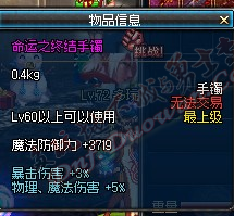 下面是开了600个圣诞节鞭炮的结果。首先是命运手镯的属性图。点击图片查看命运之终结手镯查看和哪些装备冲突。