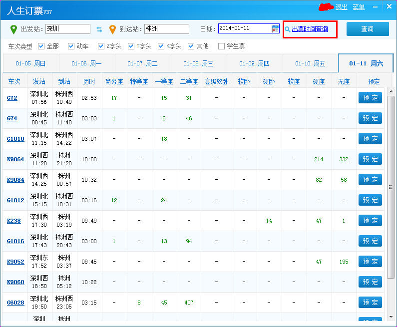 有部分童鞋可能一直不是很清楚自己要坐的那趟车的整点抢票时间,您在人生订票的订票界面就可以查看到相关信息。