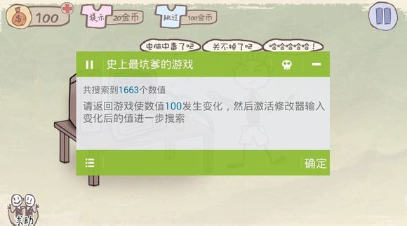 ③点击“确定”,返回游戏,点击“提示”,让金币数量发生变化