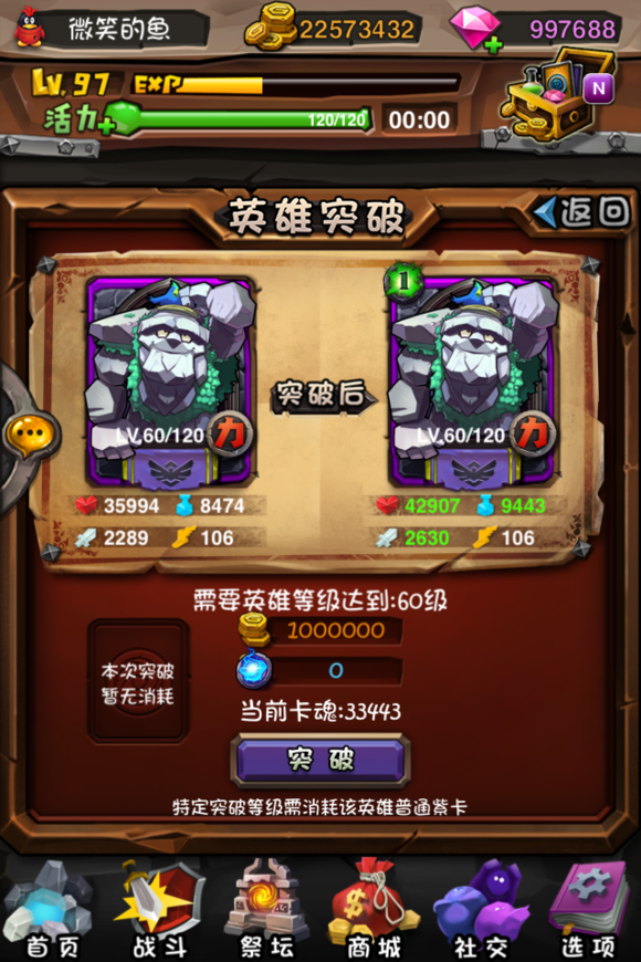 “卡牌突破”系统,是新版本将要开放的英雄属性成长玩法。在游戏的强化界面中,选择英雄突破将为你开启突破系统,卡牌当前的突破等级,会显示在卡牌上方。