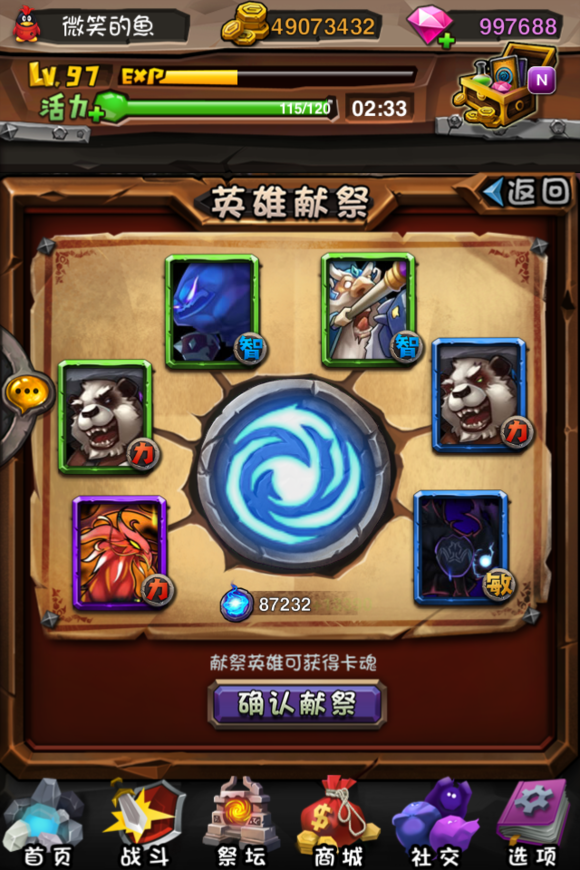 所谓卡魂,同样也是新的资源,它可以通过卡牌、卡牌碎片等原材料在新的英雄献祭、碎片献祭系统中转化而来。转换完成后,原卡牌、碎片会被销毁。