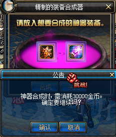 神器合成活动可以用什么神器合?不管你是封装的也好,解封的也好,领主神器也好,只能用40级到75级的粉装去合。