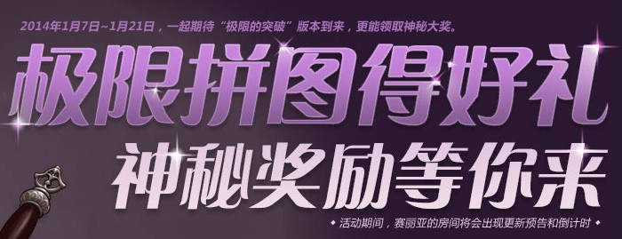 极限突破礼盒:完成拼图后的奖励礼盒。开启后,可以选择1种自己想要的道具。(该道具将于2014年1月21日凌晨6点全部删除)