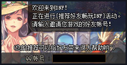输入邀请你玩DNF的玩家的QQ号,即可完成推荐,