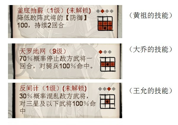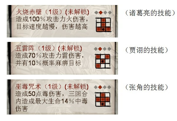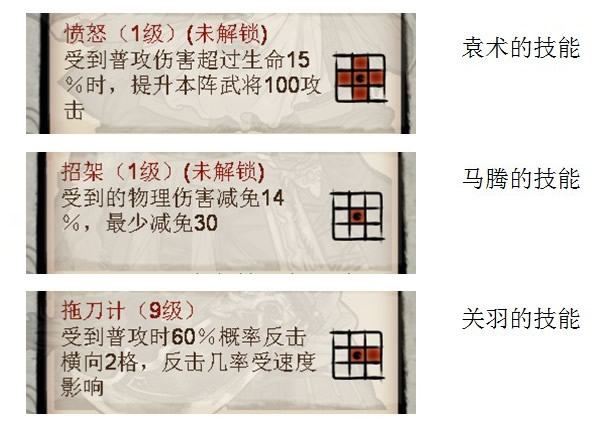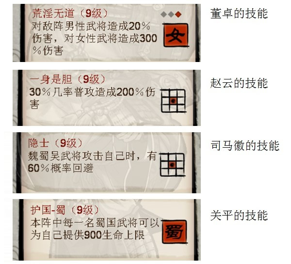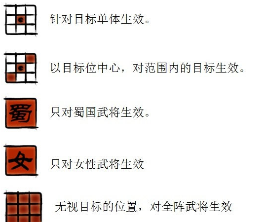 战场是采用九宫格布局,因此武将的技能都有其作用范围,根据武将技能的作用范围进行合理的布阵,才能顺利的闯关破阵。