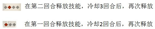 红色的方格代表技能释放的回合,灰色的方格代表技能的冷却回合。