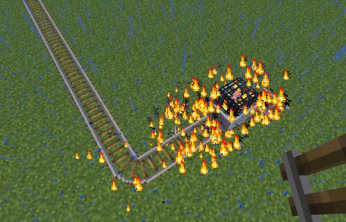 大家也可以用指令方块矿车做,运行着/setblock指令来让前方的地面变成铁轨,不过指令会更长,用指令方块矿车的话是首先把前方地面换成激活铁轨和红石块,之后把后面的地面换成普通/加速铁轨和普通地面,没刷怪笼的方便。