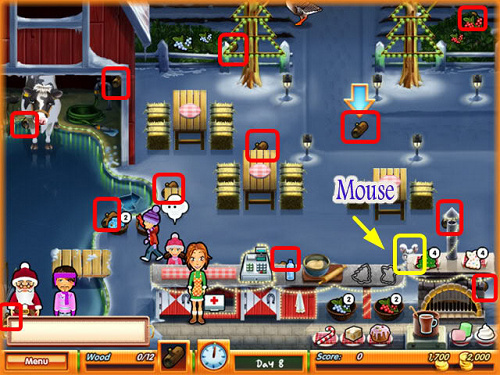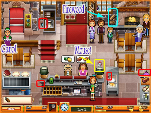 3-2找客人丢失的物品。(两顶帽子;两只手套){此关开始可以给火炉加碳以保证火不灭掉,3-1关千万别点火苗-=-会导致游戏崩溃}