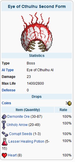如果等不及了,也可以召唤:使用克苏鲁眼球直接召唤(6个晶状体在恶魔祭坛附近合成)