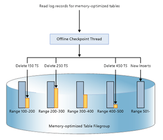 在内存优化表中,行版本的数量是由针对该行的操作次数决定的,比如:每更新一次,就会新产生一行,增加一个行版本,新行有新的开始时间戳,新行产生后,原来的数据行会自动填充结束时间戳,意味这行已经过期。
