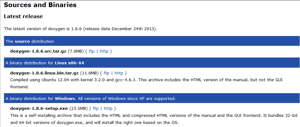 在集成之前需要安装doxygen工具,下载方法有两种:目前最新版是1.8.6