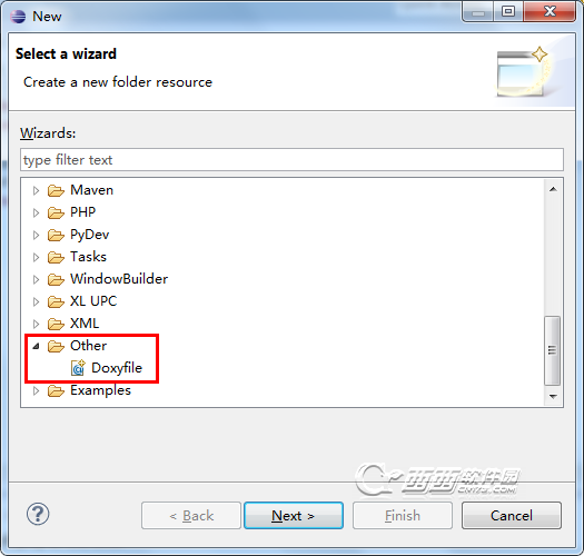 然后File->New->others....,出现下面的选择框,选择Other中的Doxyfile。
