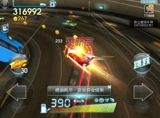 老版本中过弯时会出现减速,虽然过去之后会有加速,但是这个过程较慢;更新后,在过弯的时候会迅速加速到车辆的最高时速。