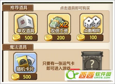 4、购买道具:进入游戏房间的时候有提供道具供玩家购买,道具可以让玩家有福利,比如说:涨工资、点数相同等等。