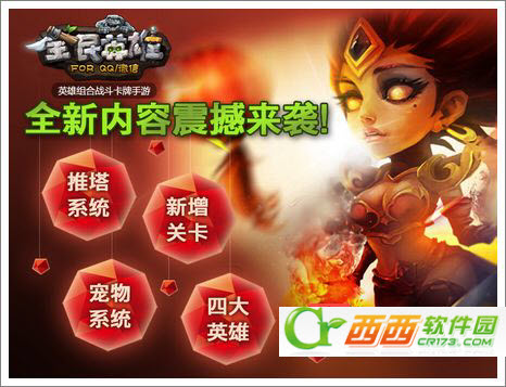 在全民英雄即将发布的新版本中,将重磅推出“推塔系统”。与DOTA的“推塔”玩法类似,系统将玩家每天参与推塔闯关的最高关数进行排行,排名前十的玩家可以额外获得重磅奖励,推塔的过程不仅奖励丰厚,还将更具趣味性和挑战性。此外,新版本中宠物系统的推出将为玩家在英雄养成方面带来新的追求,自带技能的萌宠登场,为上阵英雄提供属性加成,使战斗力大大提升。最后,新版还将新增4大神秘英雄,新的PVE关卡和挑战关卡,以及同时商城还将推出返利卡系统,为玩家带来更多福利。