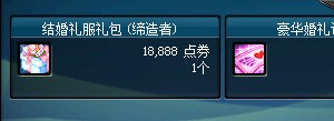 婚纱礼包,结婚后,礼包可以188单独买,结婚148也会送一个礼包的。(这个礼包只有已婚的角色才可购买。)