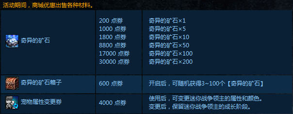 活动期间,在商城使用3000点券购买【宠物机箱(机械大师球)】,每个账号限购买一次。开启后将额外获得300个【宠物饲料】。