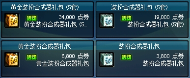 2014年2月26日更新维护后~3月11日更新维护前,游戏内商城将上架黄金装扮合成器礼包。
