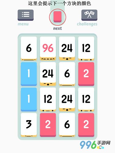 还有需要注意的是,就是每当你每一次划屏移动,所有的方块都会向你划屏的方向移动一格,同时与你划屏方向相反的一格会出现一个新的方块。比如向左划动,那么右边就会出现一个新的方块。很贴心的是,下一个方块是什么,顶部会给予提示,以便玩家确定策略。