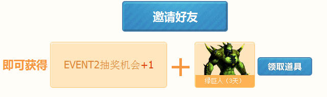 邀请3名及3名以上好友进行游戏,共同获得1局胜利,即可再获得一次抽奖机会,同时还可直接领取绿巨人(3天)