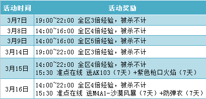 穿越火线从2014年3月3日开始“火线时间”活动,持续到3月16日。CF火线时间活动,马上送豪礼!①多倍经验、被杀不急、领取节后礼包;②指定时间玩3局CF后可抽奖;③邀请好友玩游戏获胜再抽奖。