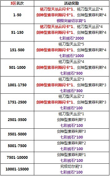 3.每集齐10000个七彩辉石可获得奖励:极限突破切尔莉*1,奖励将自动扣除对应数量七彩辉石后发放至游戏内礼盒,敬请留意;