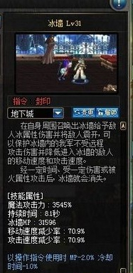 冰墙在NB3里面贡献较大的是配合驱散减速抓破招,防御远程攻击。缺点是冷却时间较大。伤害上高烈焰冲击百分之25%。冰墙随着等级增加释放的时间也会递减。5级以下释放时间1秒。每次递减为0.1秒,递减等级是7J减一次。分别是LV5 12 19 26 33.不过现阶段至多31.释放时间0.6秒。点出EX冰墙之后血量将变为47394.移动减速120.9%(根本动不了!?)刷异界冰墙挡哥布林王国爆炸 魂兰总挡二图子弹等等均有良好效果。在NB3版本还是建议满上的。不点ex就视为防护技能、补刀还有抓破招用。自行考虑。
