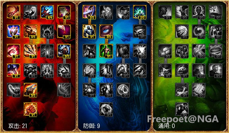 分析:防御天赋大同小异,至于攻击天赋为什么不点战争领主(额外攻击力提升2%/3.5%/5%),是参考于DanDy、Bengi的天赋。额外的AD来源一是符文、二是装备,我们的符文带了 10点,
