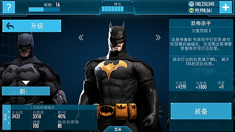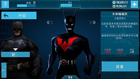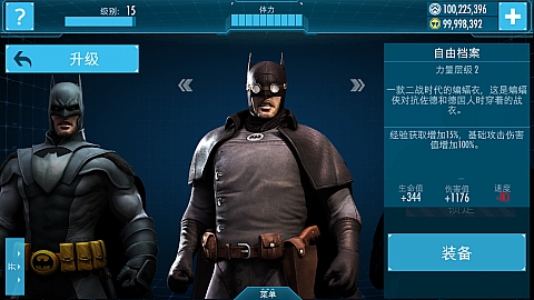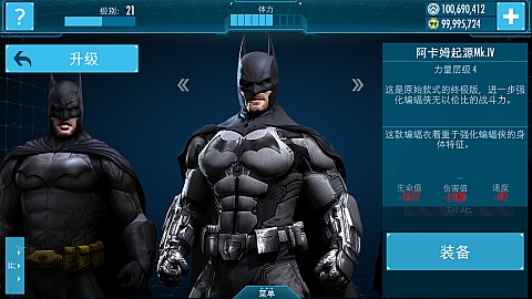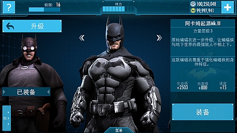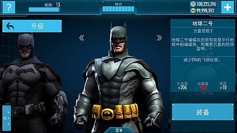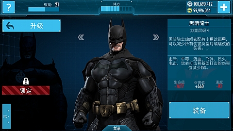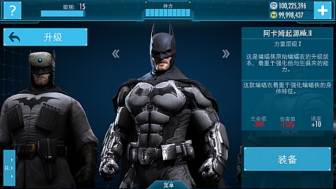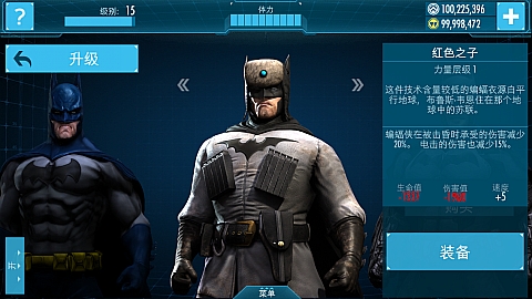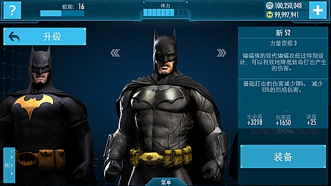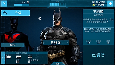 原始蝙蝠战衣的进一步升级,大大强化了各项属性,蝙蝠侠得意对抗更高强度的敌人。
