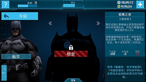 特殊效果:每次任务增加一个生命强化,可以让命悬一线的蝙蝠侠起死回生。
