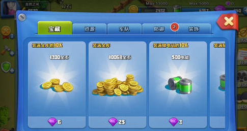 3、钻石兑换:消耗钻石可以兑换一定量的金币,与其他游戏不同,战争总动员的兑换数量是根据金库的最大值决定的。当然了,并不是说金库上限越多越划算,因为当你的金币上限越高,所需要兑换的钻石数就越多。