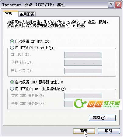 点击选择“自动获得IP地址”和“自动获取DNS服务器地址”。好了后点击“确定”按钮