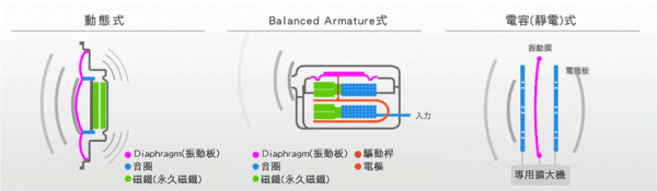 以下是动圈式 动铁式 静电式 三种发声单元的工作原理图: