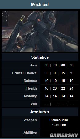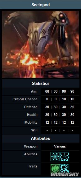 后期敌人主要说下Sectopod.由于其50%减伤的技能导致其实这是1个有60HP,超高暴击抵抗,11DM范围炸弹,17DM附带监视射击主炮可1回合2次射击的玩意. 铁人模式后期减员的唯一理由....