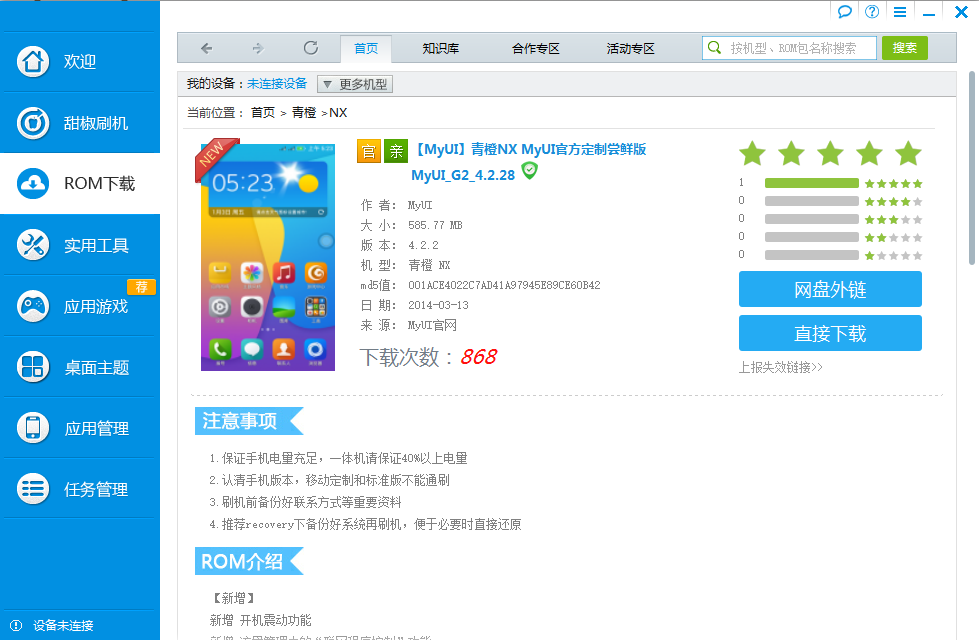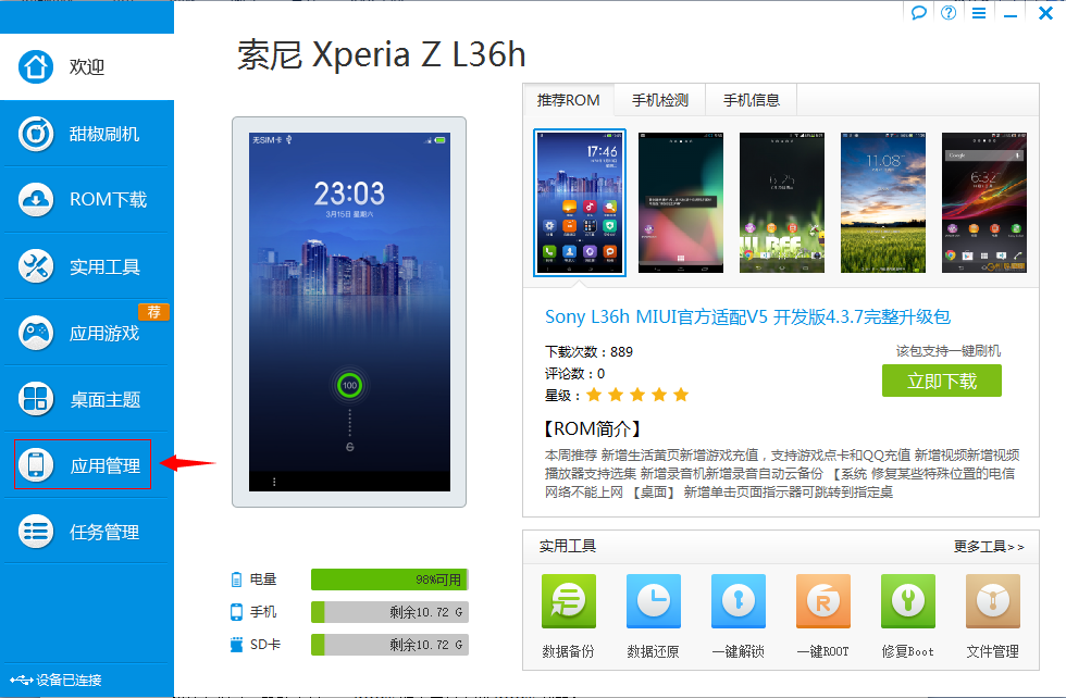 1、一键刷机新增支持机型:索尼 L36h、努比亚Z5S MINI等;